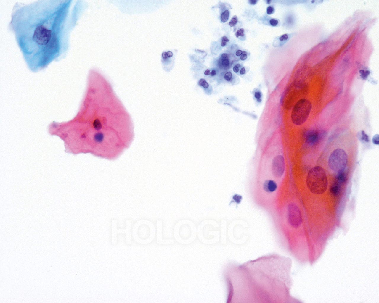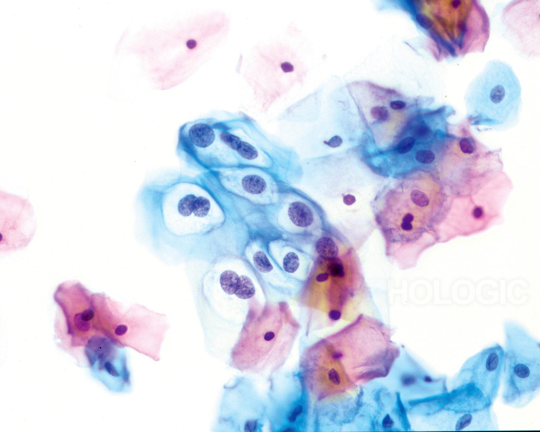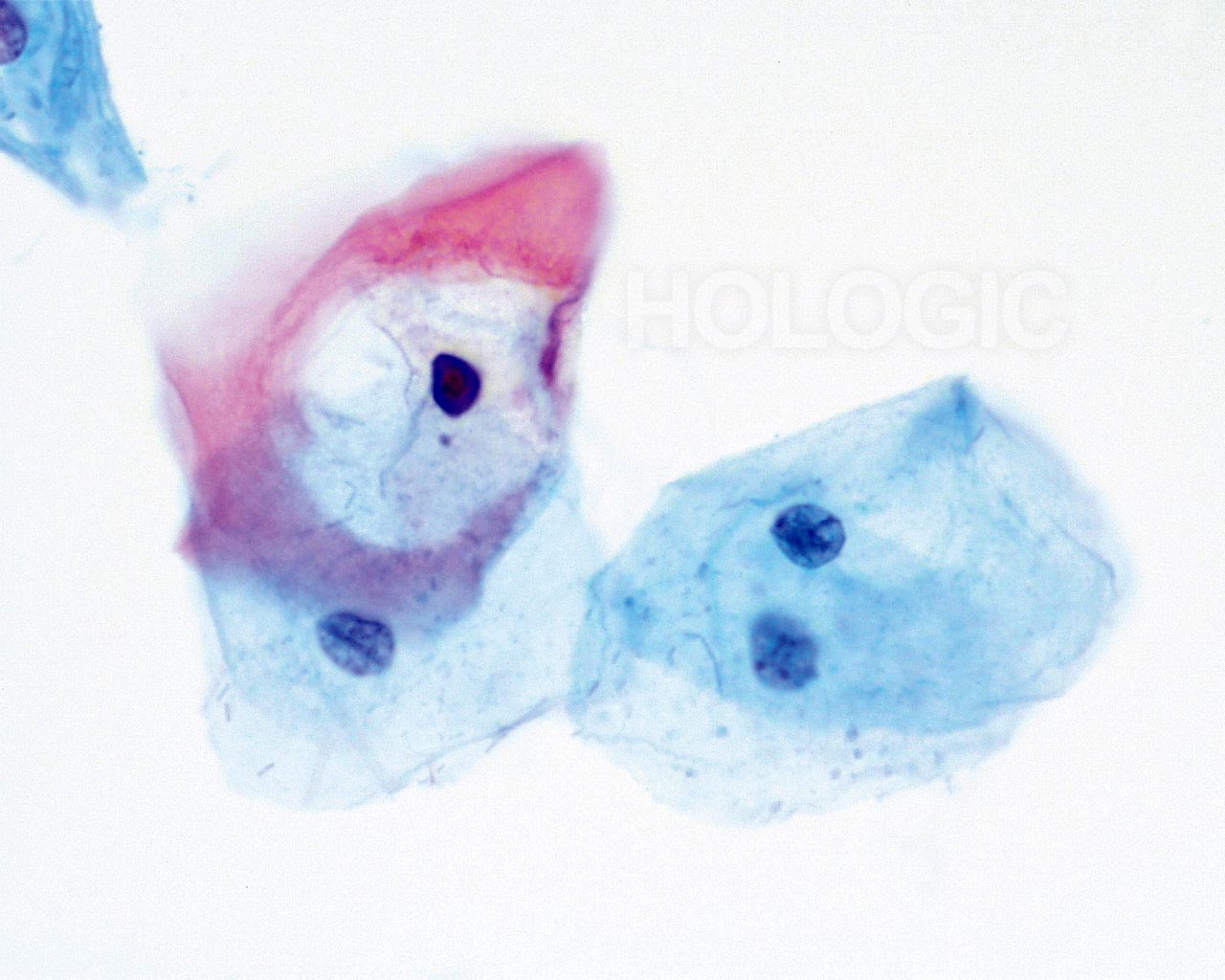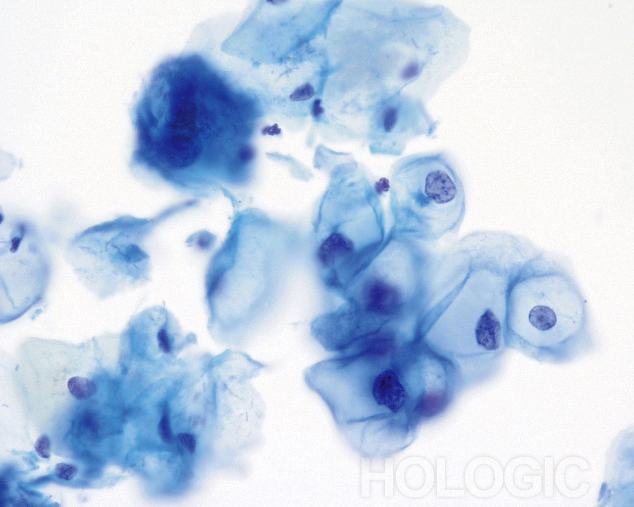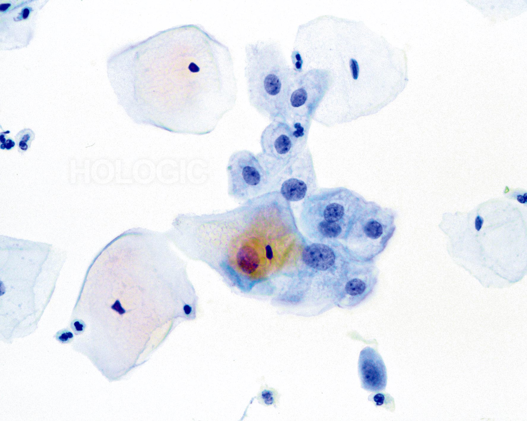 Solange ASC eine Kategorie des TBS ist, wird es von Zytologen aufgrund der inhärenten Subjektivität der menschlichen Diagnosestellung und der variablen Interpretation diagnostischer Kriterien benutzt werden. Ebenfalls wesentlich ist in diesem Zusammenhang die Biologie humaner Papillomviren (HPV), welche morphologische Irritationen in Zellen verursachen, die geringgradiger sind als die einer LSIL. Die morphologischen Veränderungen, die durch HPV verursacht werden, werden detaillierter im Abschnitt über LSIL behandelt. Die Rolle dieser Viren bei der Entstehung von ASC hat die Möglichkeit geschaffen, das relative Risiko von ASC-Veränderungen durch sekundäre Testung von Hoch- vs. Niedrigrisiko-HPV-Typen aus dem ThinPrep® Pap Test-Gefäß zu bestimmen.