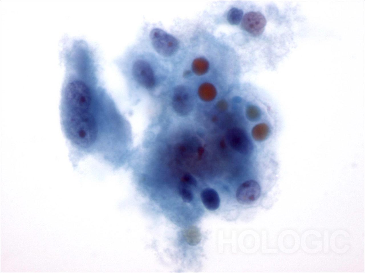 - Perinukleäre Aufhellung, markante Zellgrenzen („Koilozyten“)