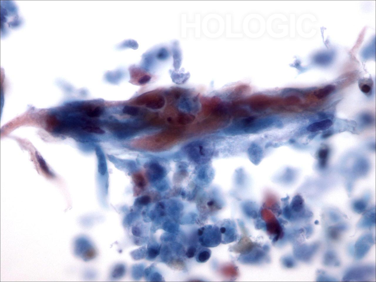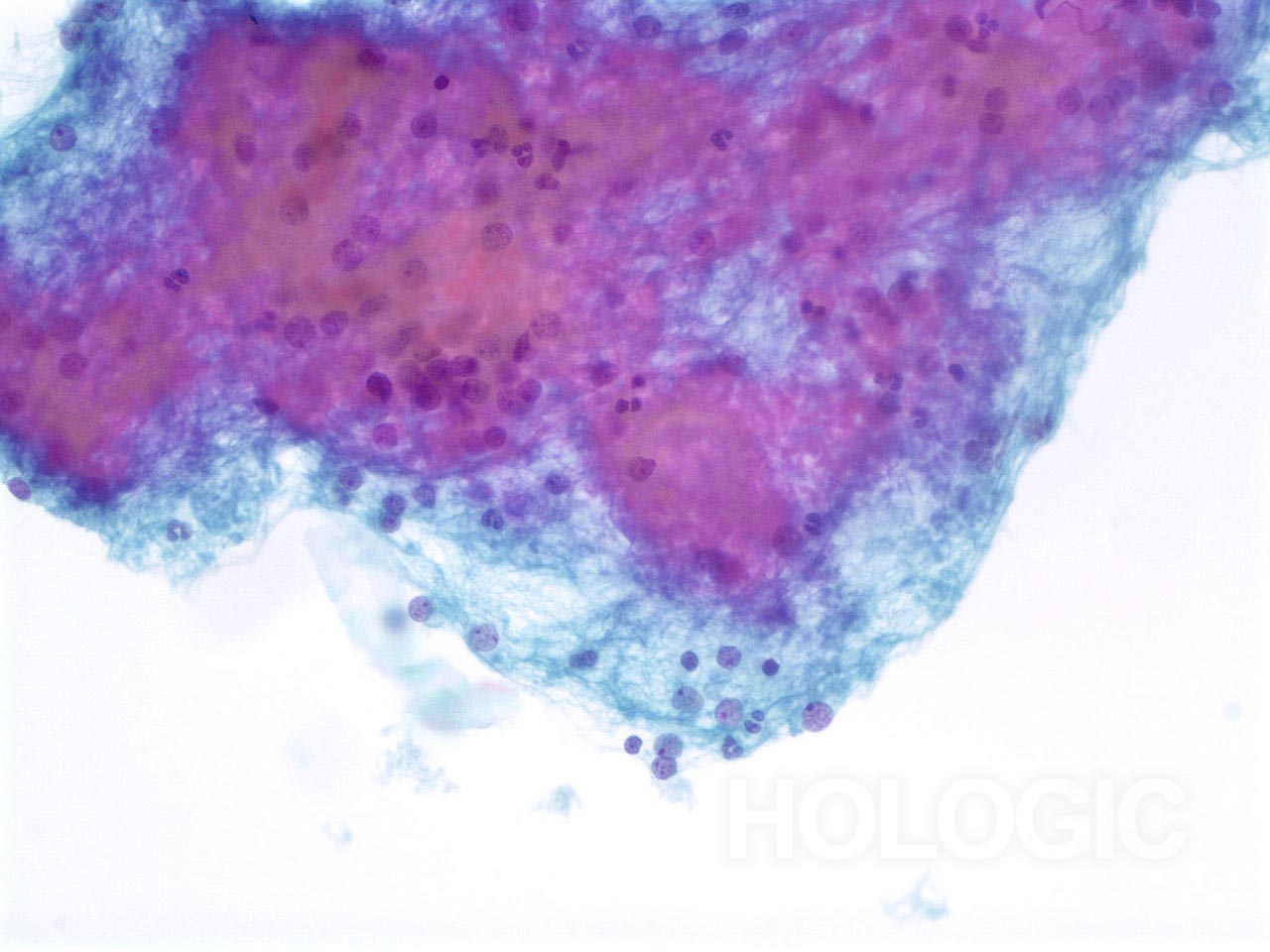 - Rotes, granuläres Zytoplasma bei luftgetrocknetem Material