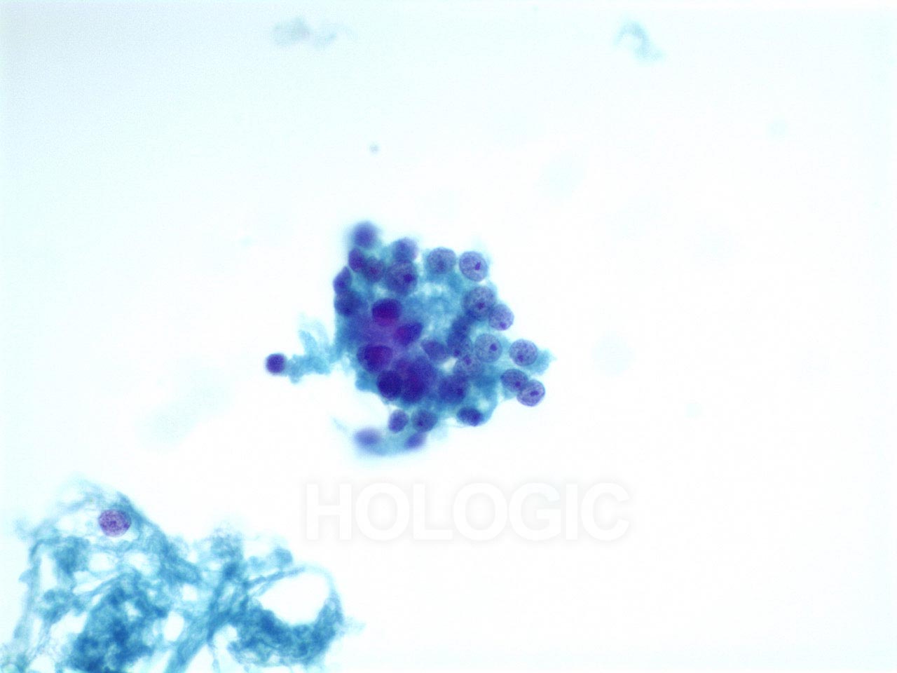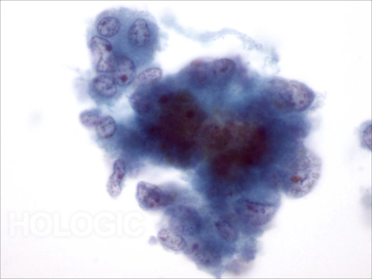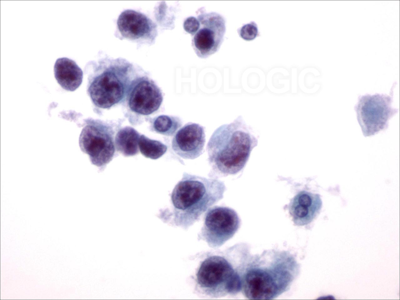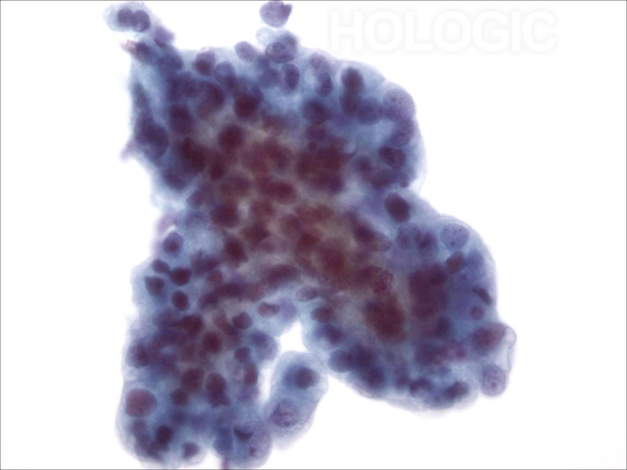 - Zellverbände, Cluster, einzelne Zellen (geringe Zellkohäsion, aber weniger ausgeprägt als bei KNZK)