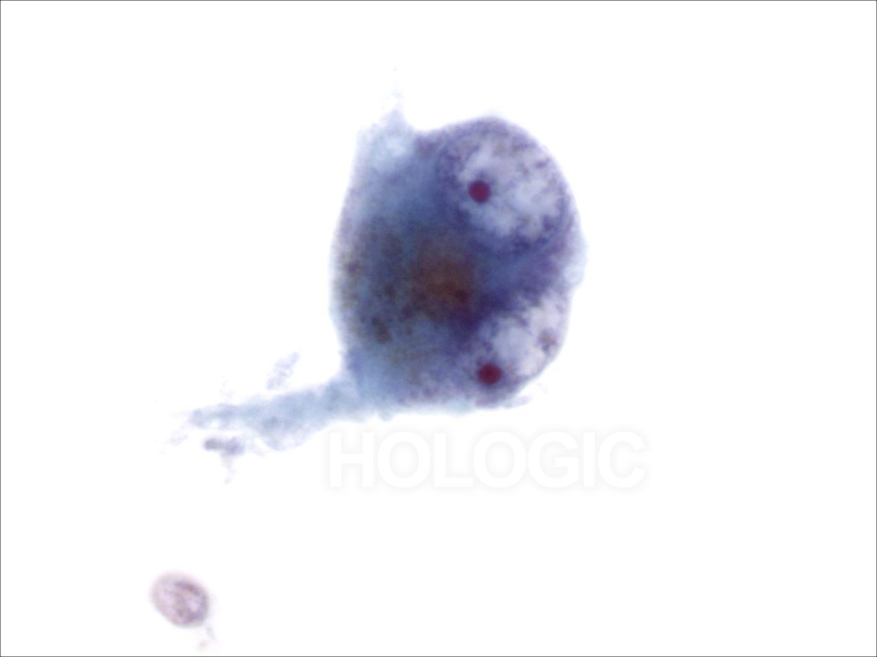- Flockig/transparent/granuläres, uneinheitliches Zytoplasma