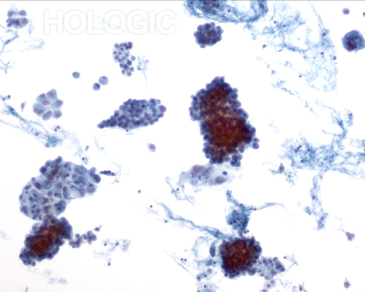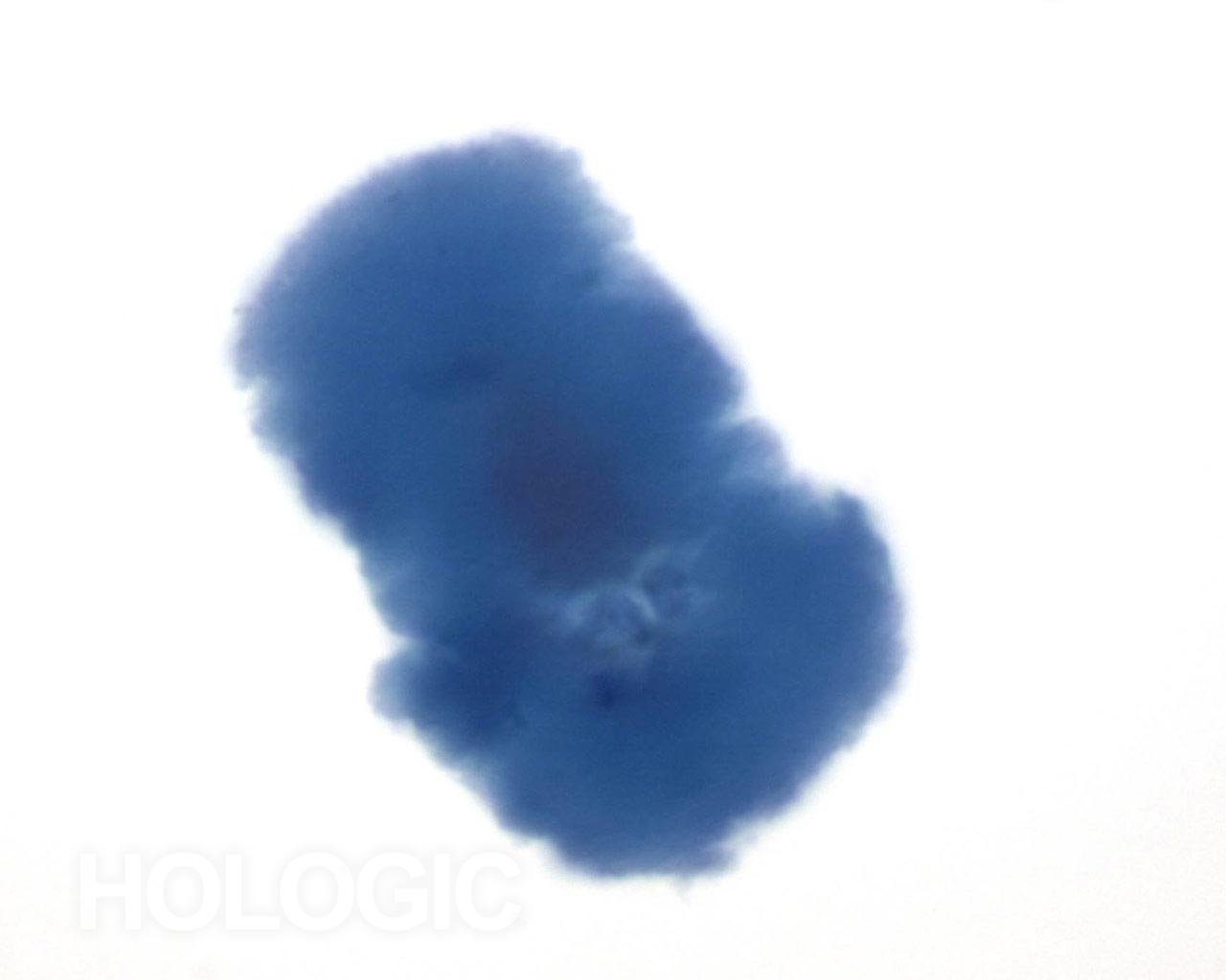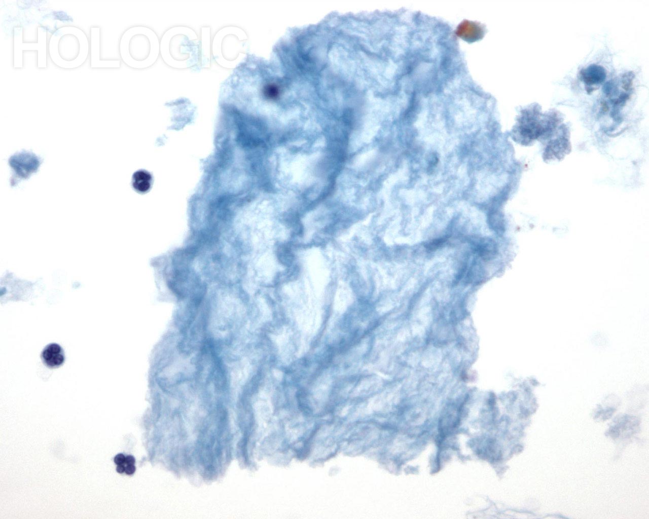 In genere, nei vetrini ThinPrep la colloide appare come un frammento di materiale amorfo omogeneo con bordi netti e due tonalità di colore.60x