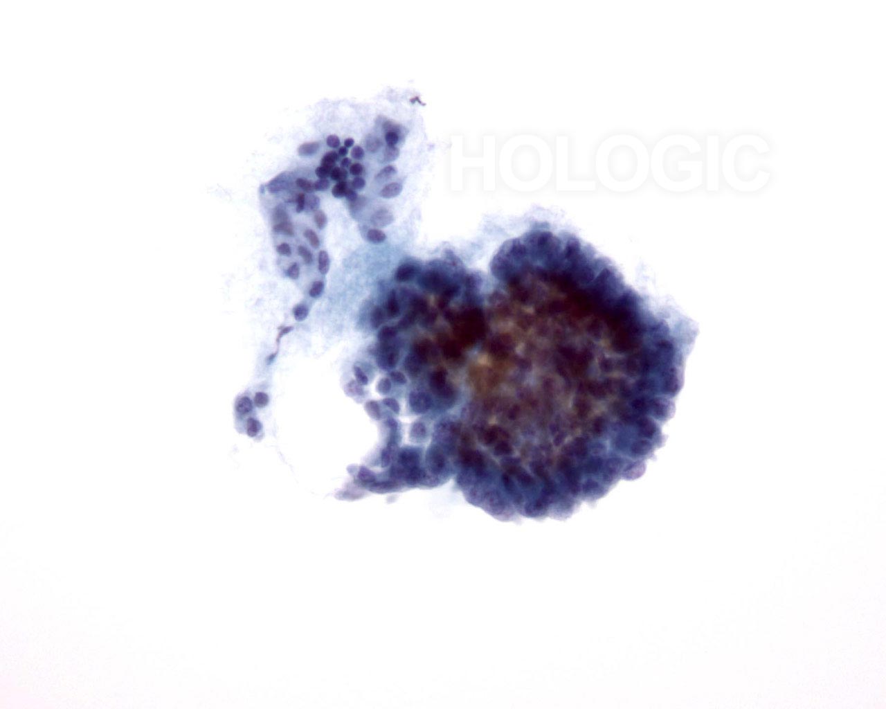 Nei preparati ThinPrep i carcinomi papillari si presentano spesso sotto forma di lembi di cellule follicolari ingrandite con membrane nucleari irregolari e nucleoli piccoli ma prominenti e spesso eosinofili.60X