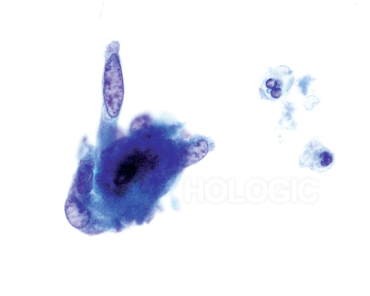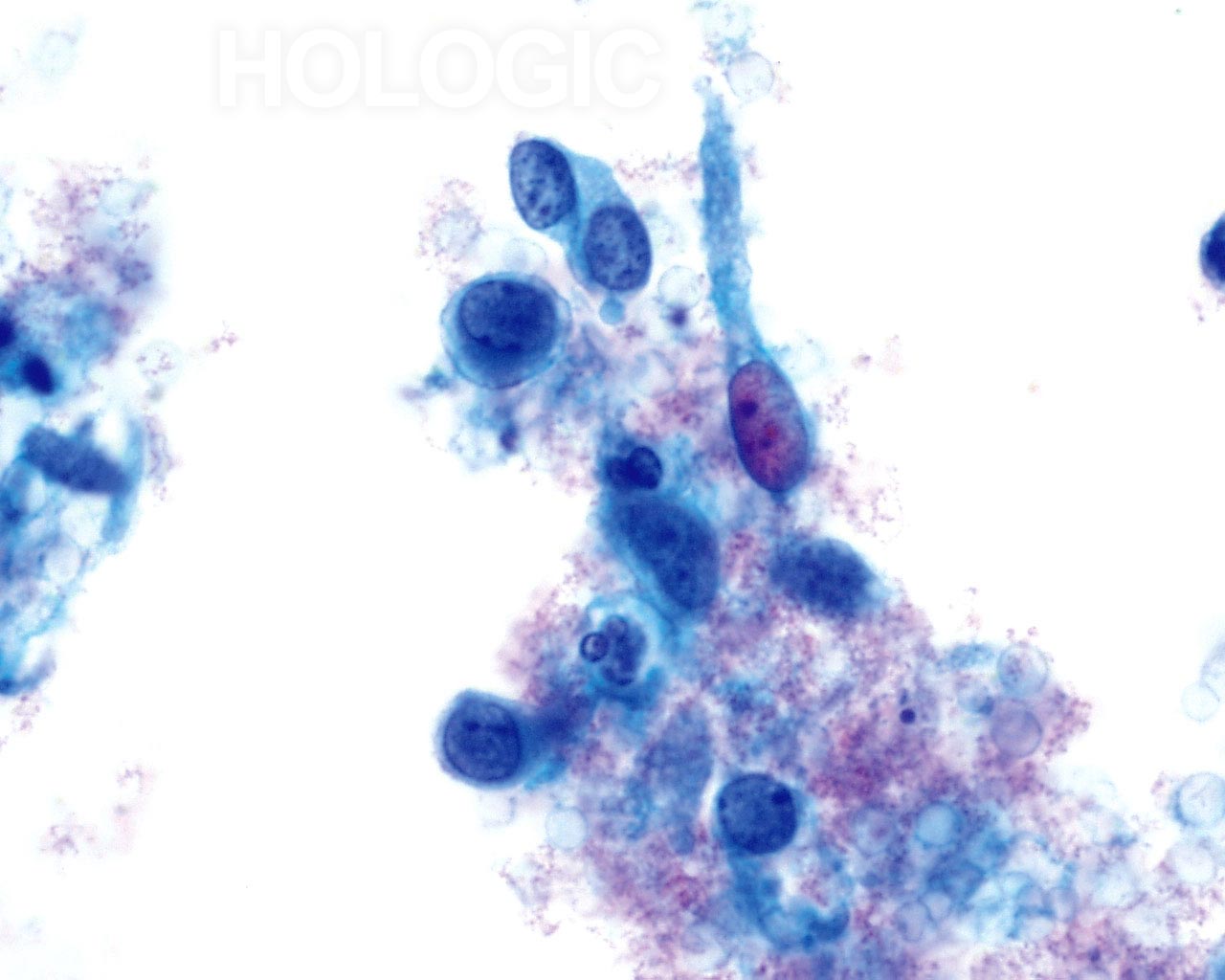 膣周囲悪性腫瘍、転移性癌および稀ではあるものの頸部悪性新生物は、ThinPrep標本によって発見されることがあります。患者の病歴を知ることおよび特殊染色の使用が確定診断を下す際に必要になることもありますが、悪性腫瘍の過程は迅速に明らかにする必要があります。