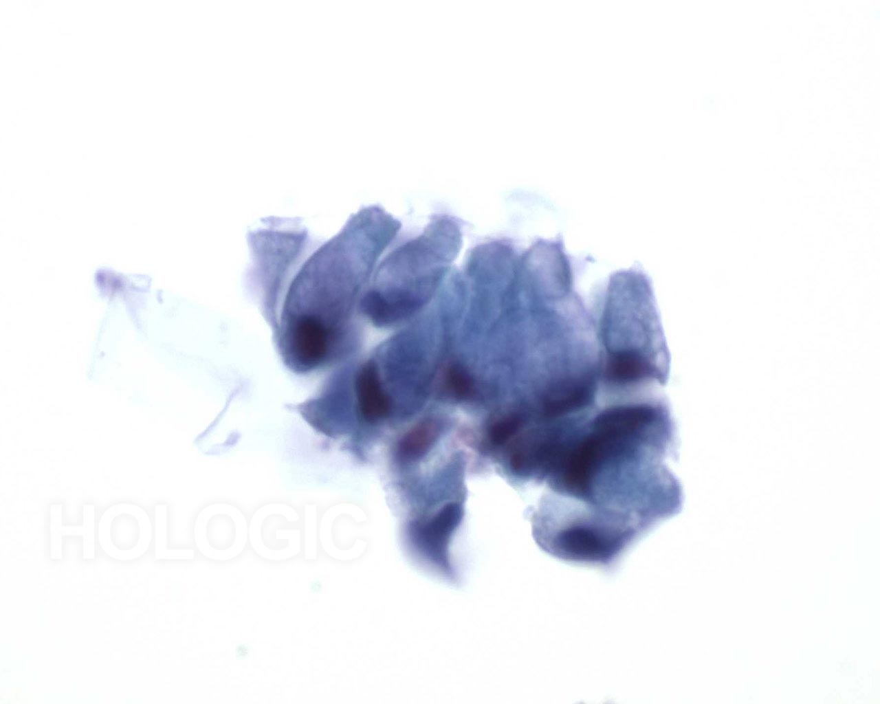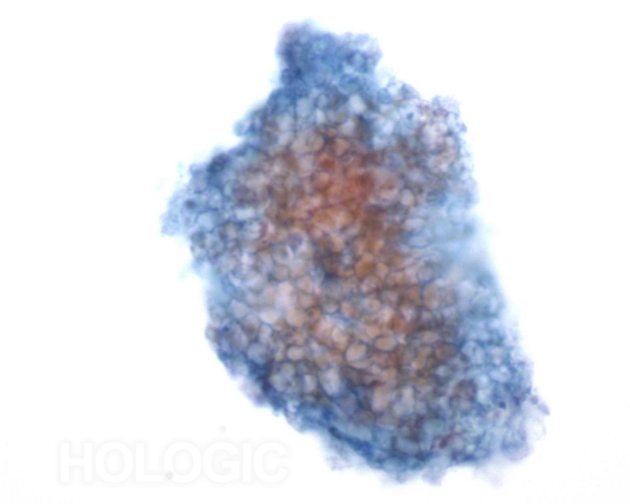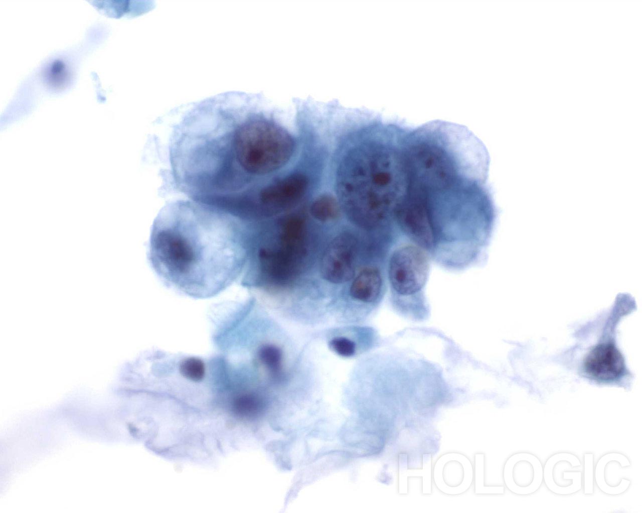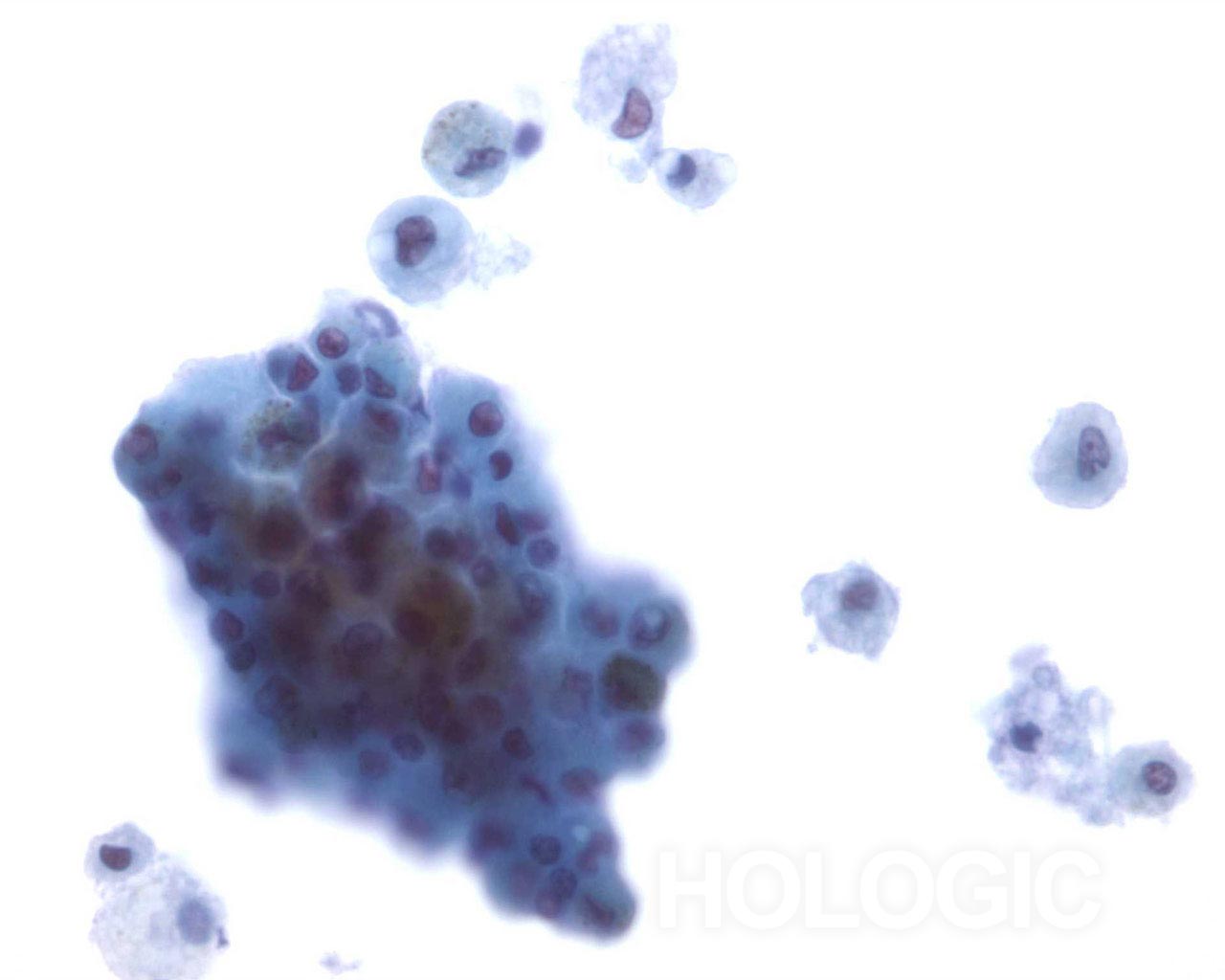 この多核巨組織球は、気管支扁平上皮細胞の反応性集塊と誤診される可能性があります。核は良性の形態を維持します。