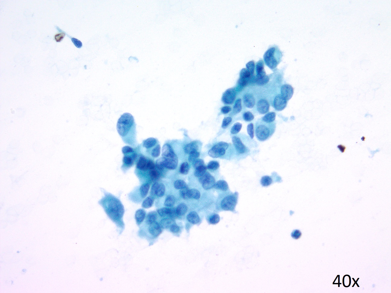 Specimen Type: FNA of RUL nodule. ThinPrep® Non-Gyn and conventional smears with Diff Quik stain, H&E stain (traditional cell block), Papanicolaou stain and AE1/AE3 (traditional cell block).
