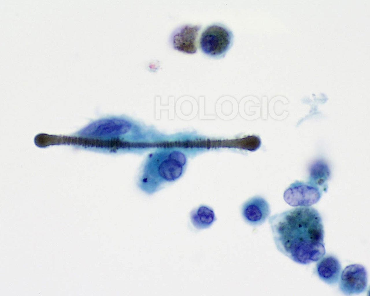 Hoogreactieve epitheelcellen kunnen te zien zijn bij patiënten met pulmonaal aspergilloom.