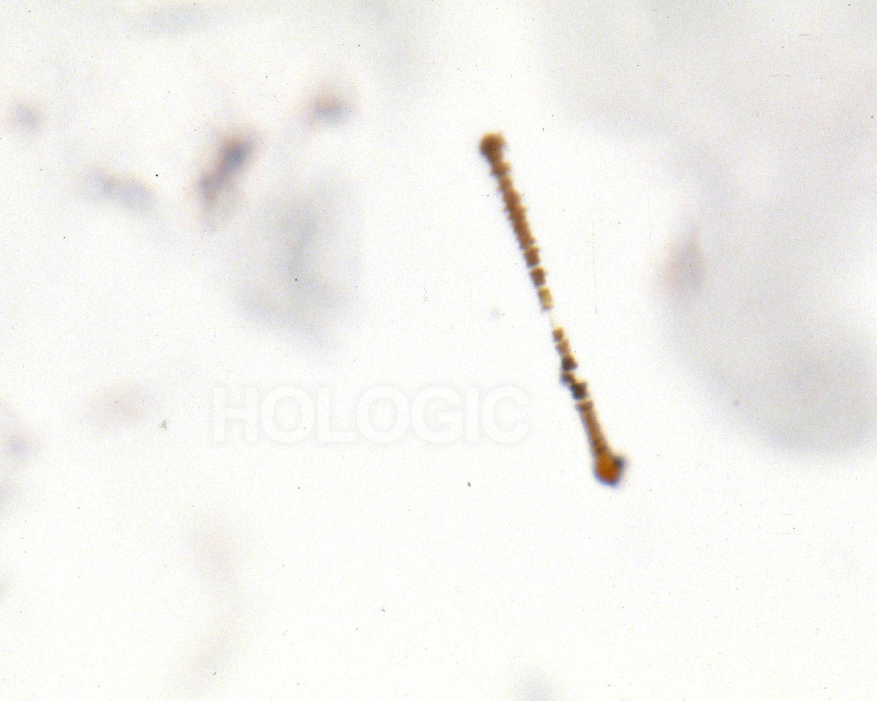 Multipele hyfale vormen van Candida spp. kunnen verkregen worden in de respiratoire monsters van patiënten met orale candida. (zilverbasis kleuring)