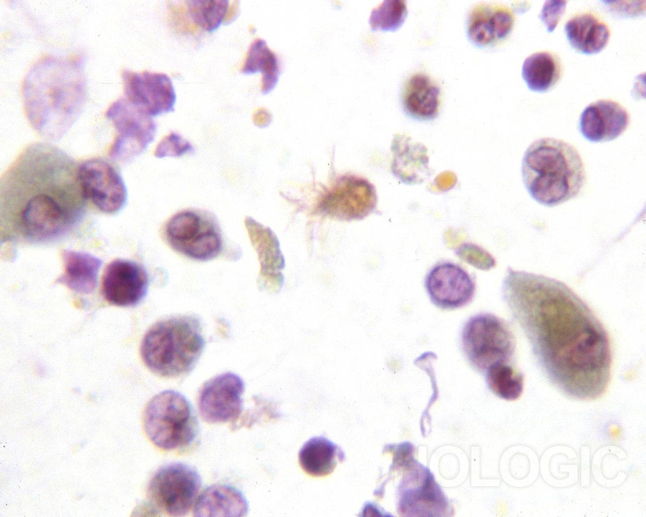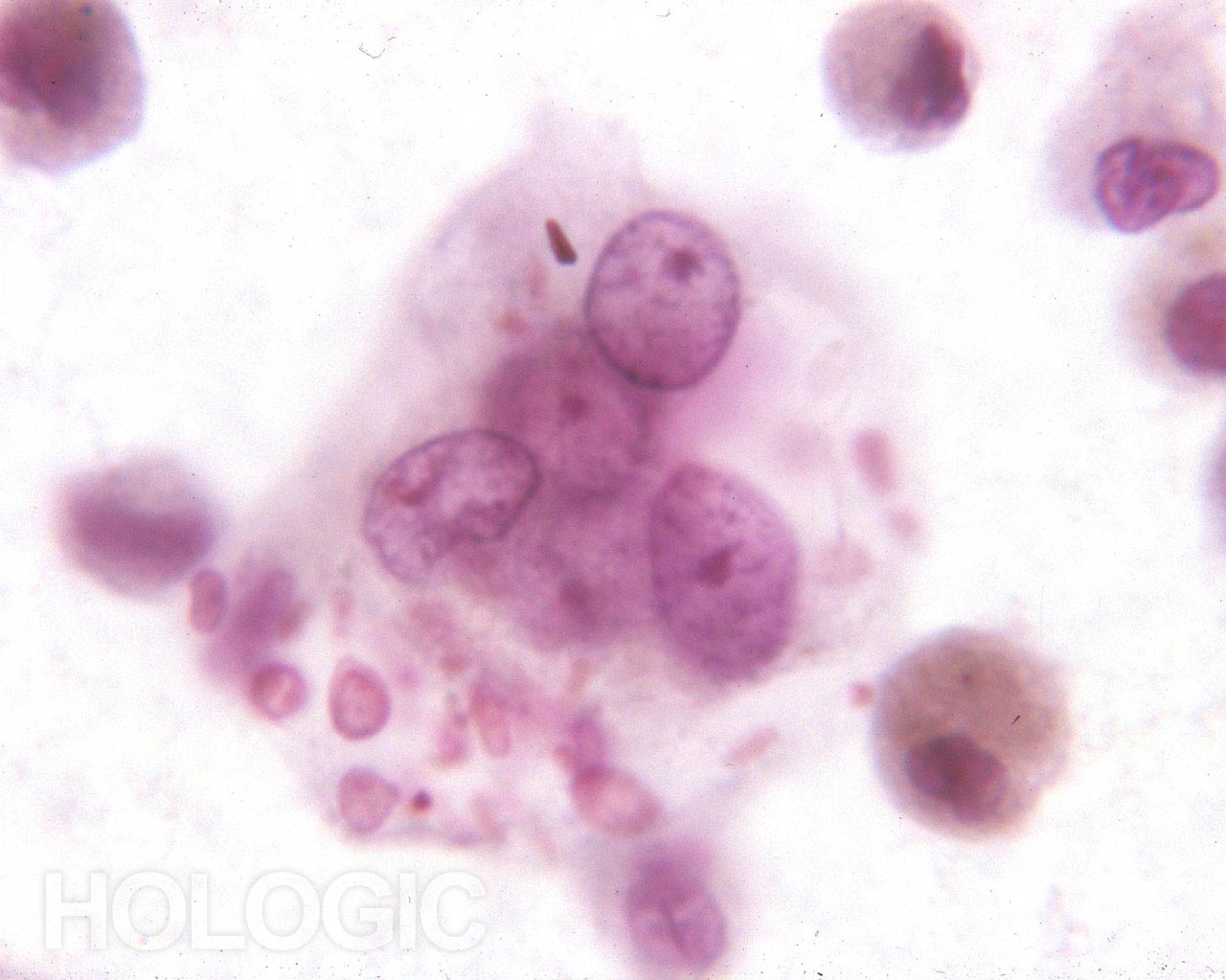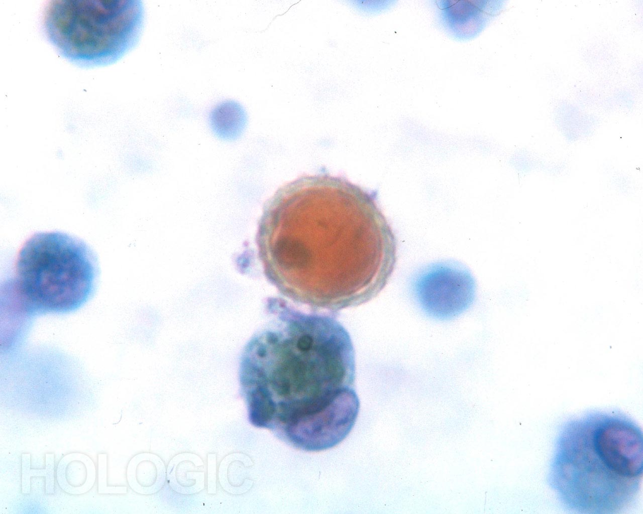 Meerdere intracellulaire gisten worden gezien binnen het cytoplasma van macrofagen bij Cryptococcus infectie.