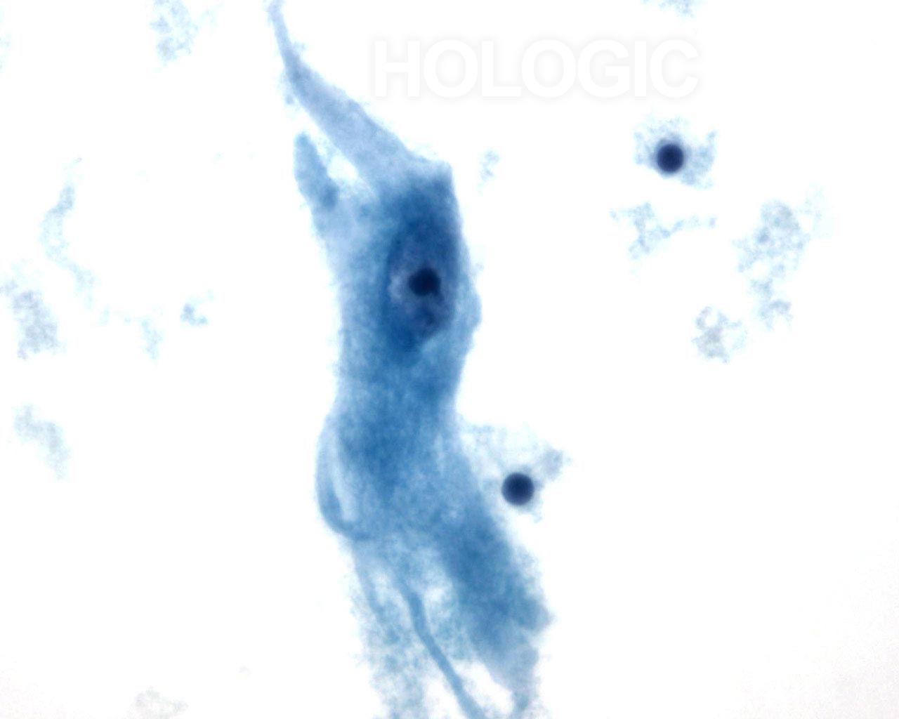 Radiation treatment of malignant lesions in the female genital tract traumatizes the epithelium causing ulceration that can cytologically mimic dysplasia or carcinoma. The extent of this trauma depends on the type and duration of therapy, therefore the cellular changes may resolve within six months or can persist for a lifetime. Some chemotherapeutic agents can also produce similar cellular changes, making patient history a valuable tool. Post-radiation dysplasia (PRD) has been reported in up to 23% of patients with the atypia resembling that of non-radiated patients. Considering the difficulties in distinguishing PRD from recurrent carcinoma, colposcopy and biopsy are recommended to rule out the latter.