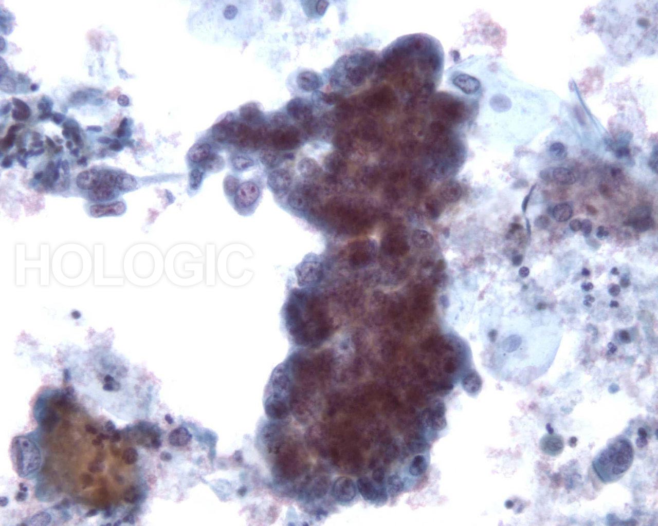 The three-dimensional nature of this cluster of adenocarcinoma is apparent.